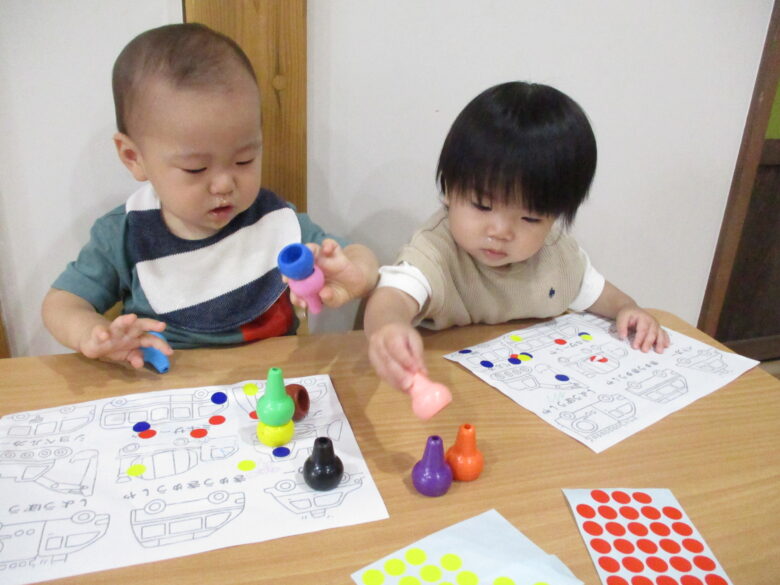 自分で好きな色のクレヨンを選んで書くよ~!