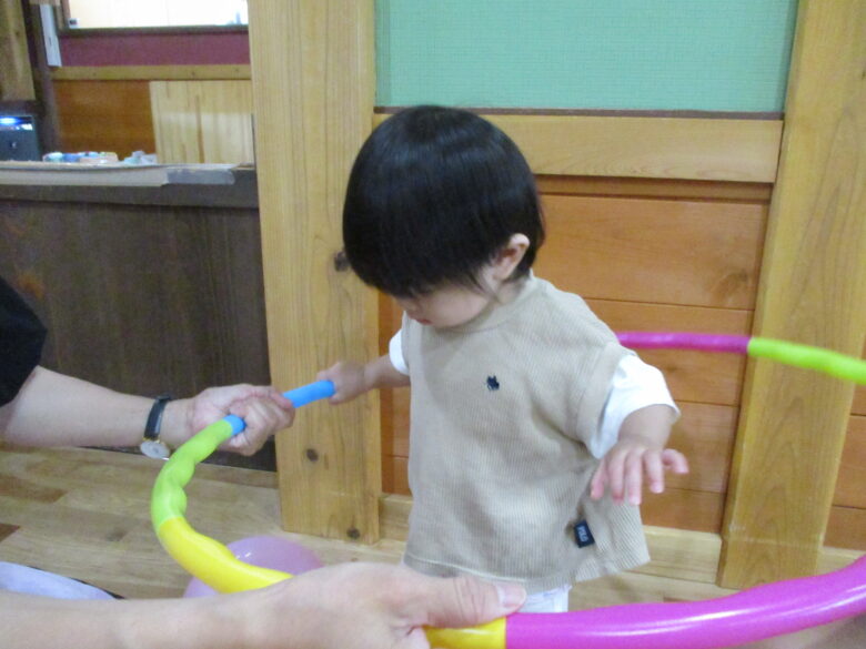 フラフープを使ったり、風船を飛ばしており様々な動きをして楽しんでいます!