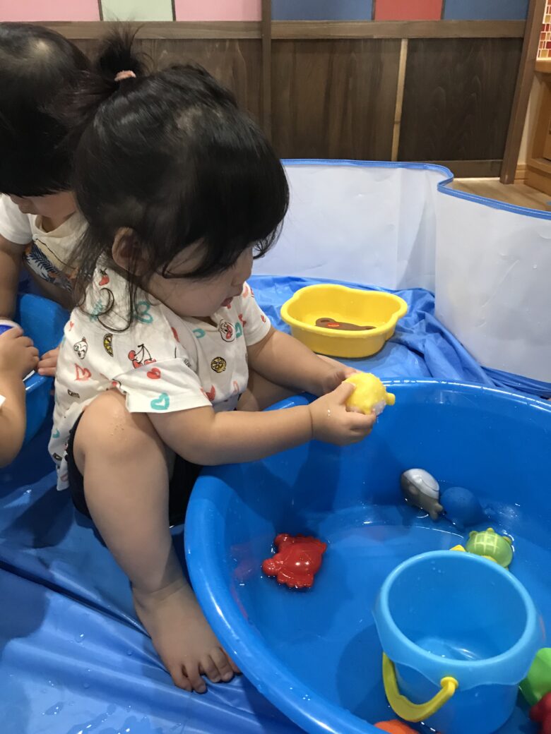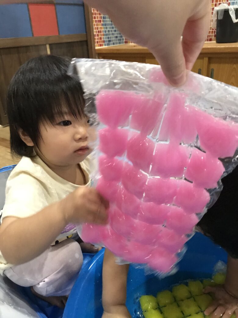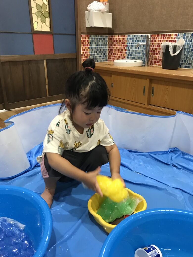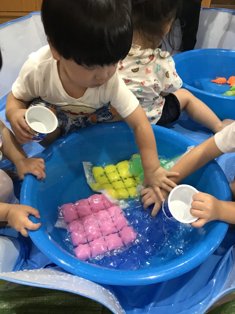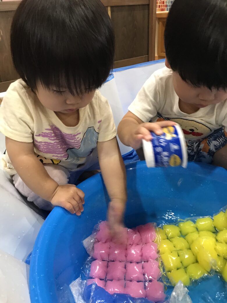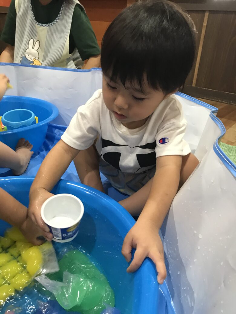 水に慣れない子やどんぐり組さんも袋ごしだと安心して触れます✨