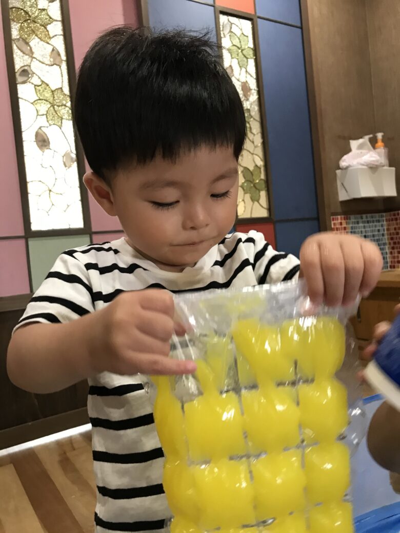 100円均一に売っているアイスバッグに色水を入れたら出来上がりととても簡単に作れます🍧