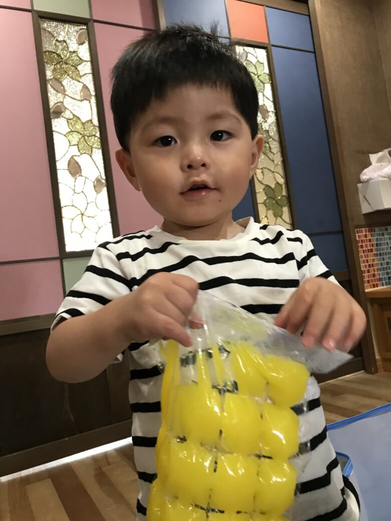 どの色がいい??と聞くと指をさして黄色を選びました💛