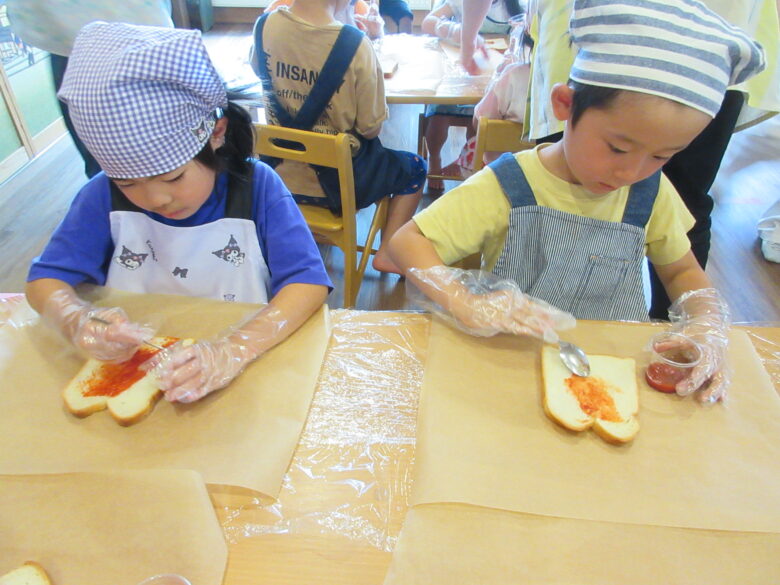 パンにケチャップぬって、
