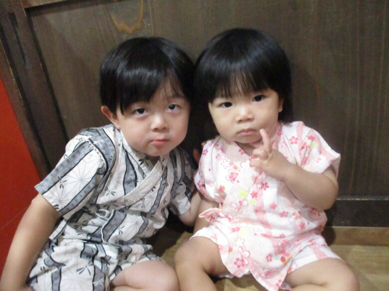 同じクラスのお友達と可愛い甚平姿💖