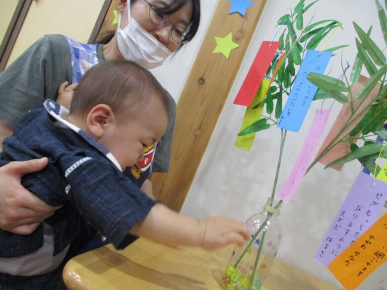 今日は七夕祭りをしました。みんなで七夕のお話しを聞いた後はたなばたさまのうたをうたいおねがいごとをいいました🌟
