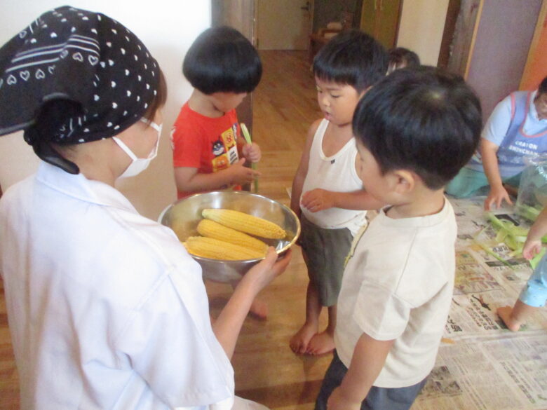 綺麗にむく事ができ、給食さんに手渡しゆでてもらい、おやつの時に食べようと思います。☻ 今度は、みんながとうもろこしを美味しそうに食べているところを載せたいなと思います\(^_^)/