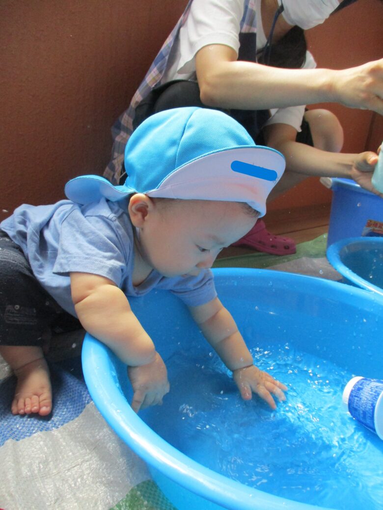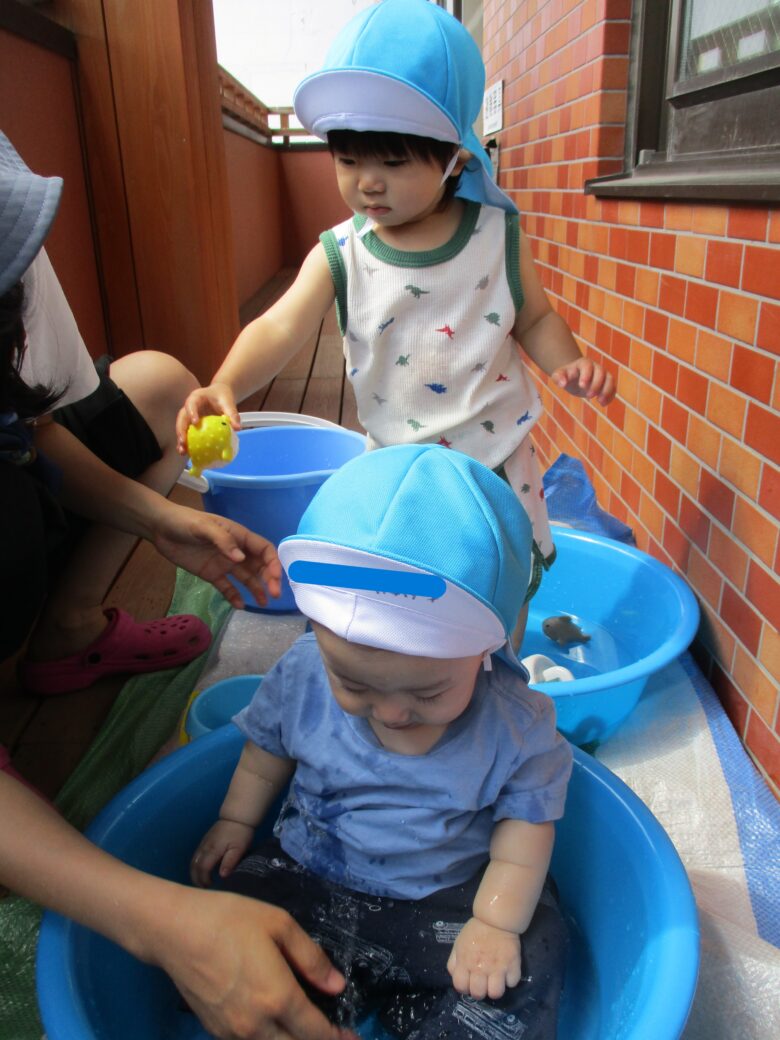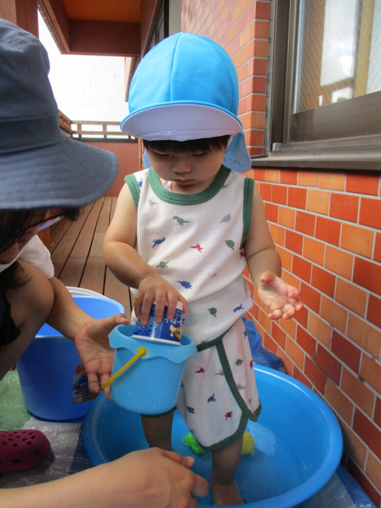 お水を手でバシャバシャしたり、バケツを使って流したりしていましたよ💫