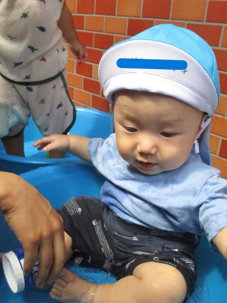 少しずつ水に慣れており全身濡れても笑っています😆💛