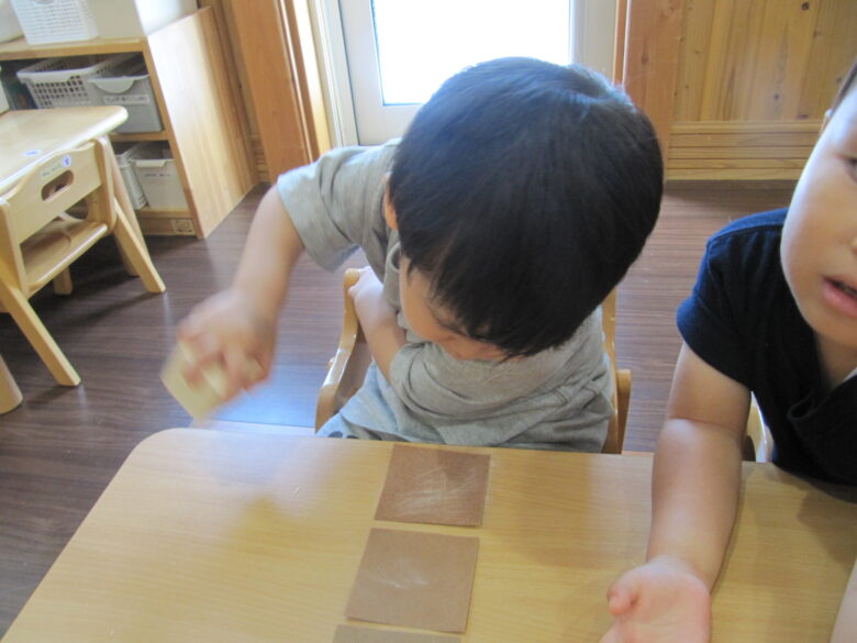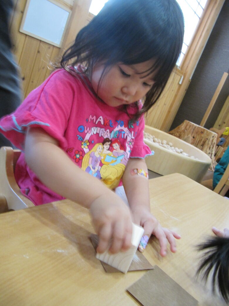 力が入り過ぎて手が痛いという子もいたり、ツルツルになった~と表面を触って気付く子もいたりと