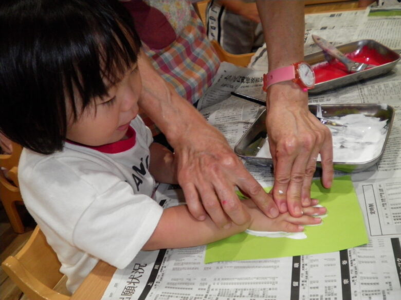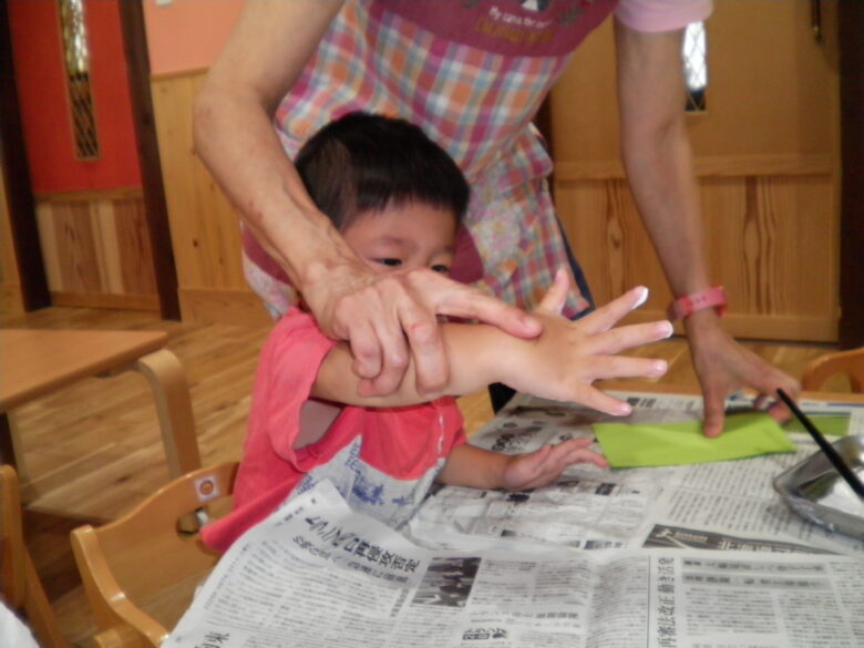 くりさんはハンドペインティングです。 感触が苦手な子もいました・・💦
