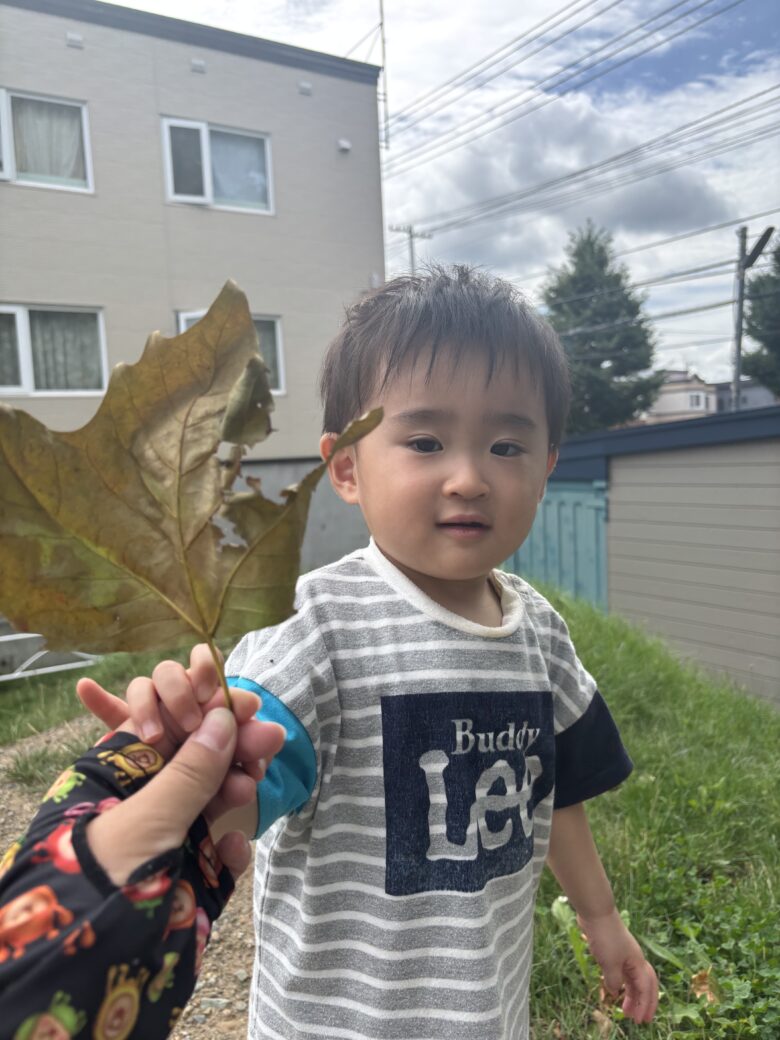 落ちてた葉っぱ顔と同じぐらいだね😄 そろそろ秋がくるのかな!