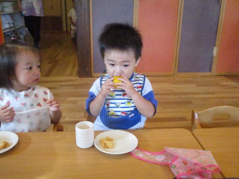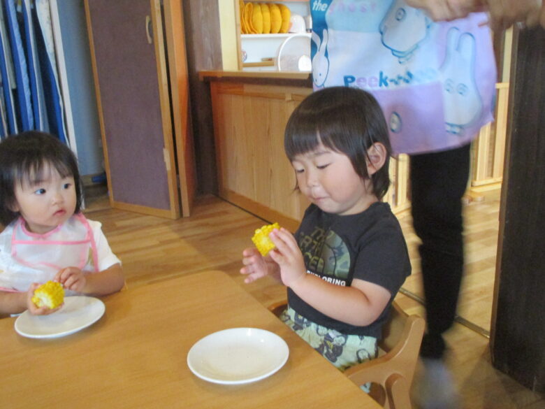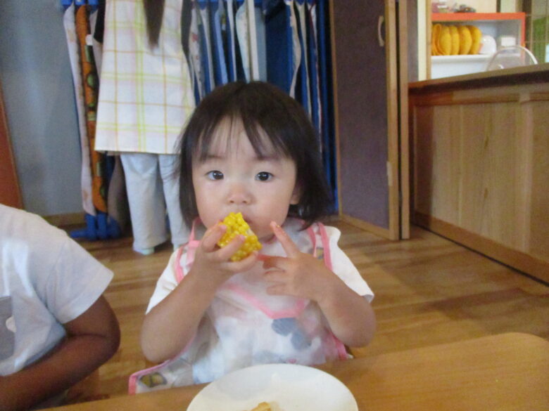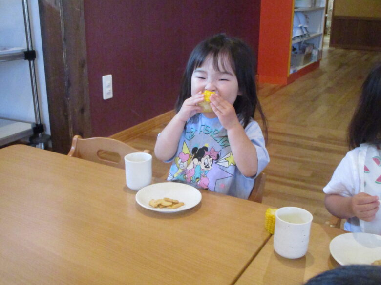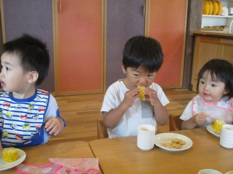くるみ組さんが、頑張って皮をむいてくれたとうもろこしをみんなで美味しくいただいたよ\(^_^)/