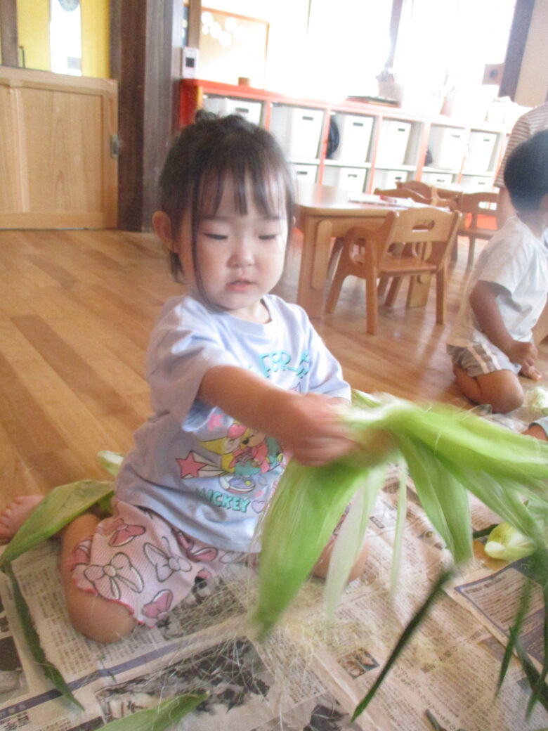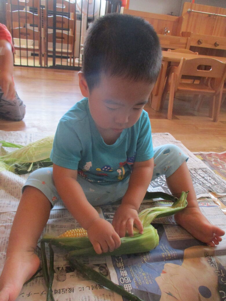 とうもろこしの皮むき<br /> 一生懸命に頑張ったよ✌
