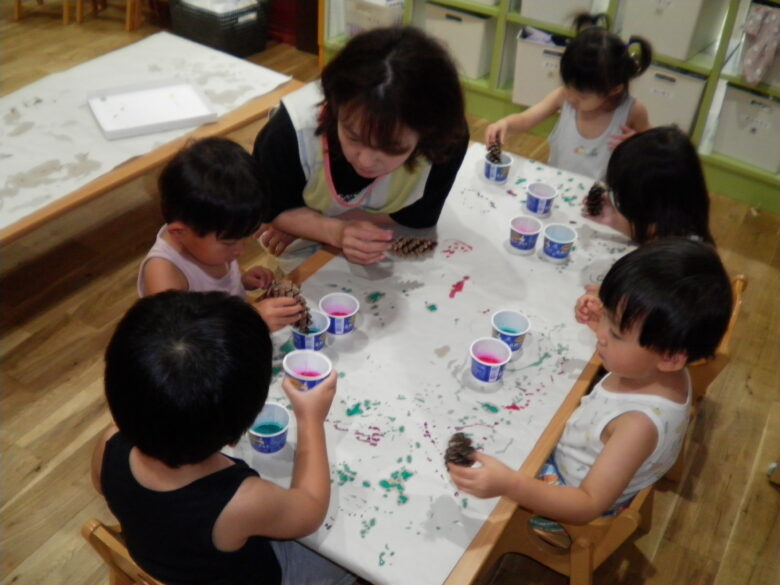 くるみ組さん、松ぼっくりのお絵描きを楽しみました!!