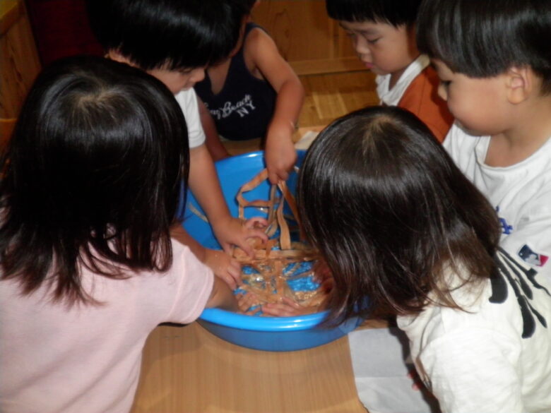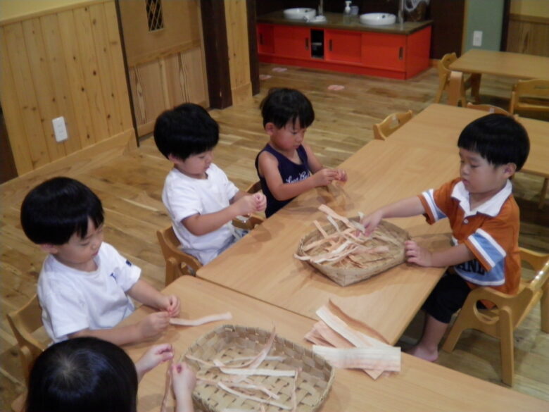 大工さんに譲ってもらったカンナ屑に触れてみました!
