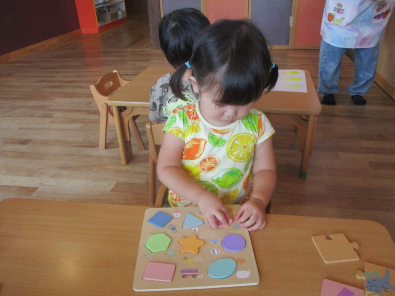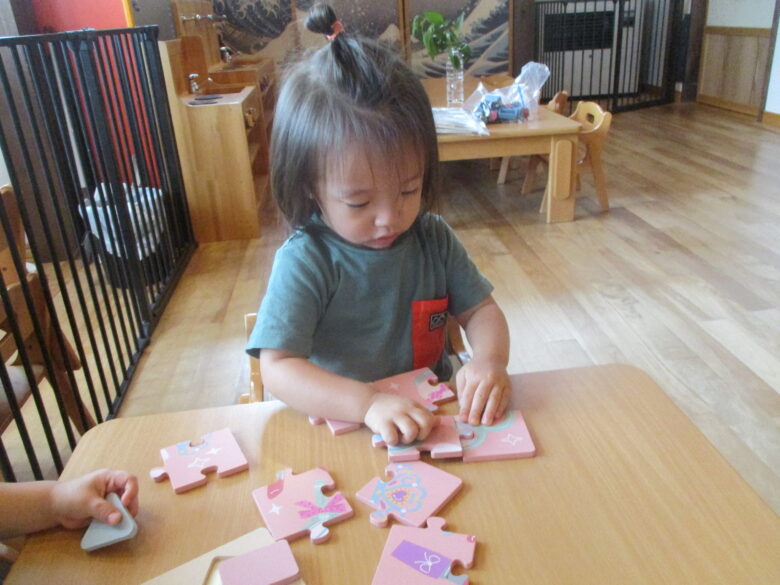どこかな・・・。とパズルのピースをはめていましたよ。