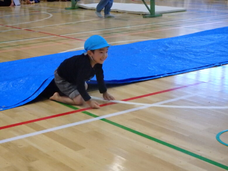 様々な障害物を乗り越え、南の沢保育園のお友だちに負けないよう、必死になっていたかえで組さんです🥰