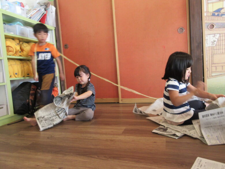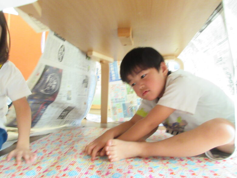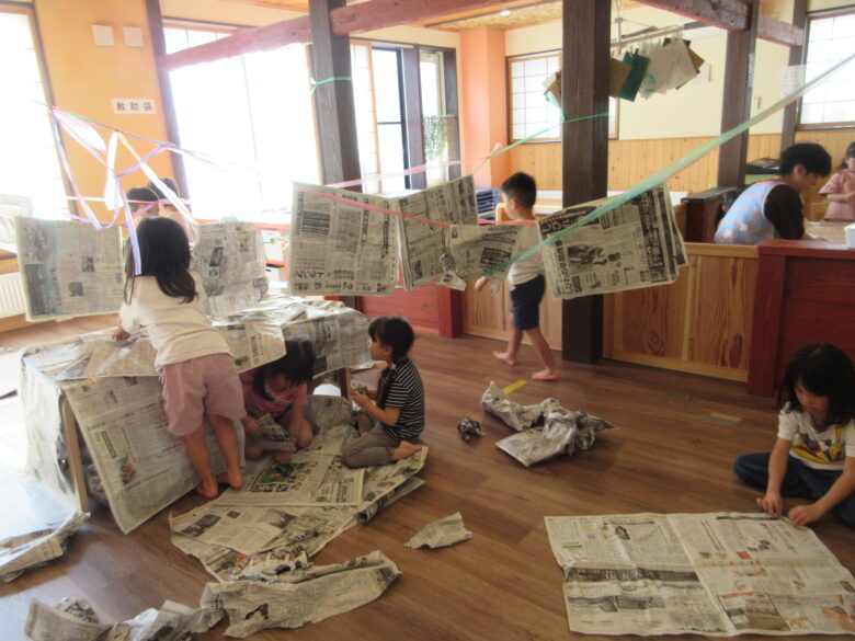 南の沢保育園 基地作り 2025.10.03 南の沢保育園 さくら・かえで組さん、新聞紙とスズランテープでみんなで秘密基地を作りました! ここに紐を繋げて・・今日はテーブルの下に入ってOK!自分たちで作る自分たちの秘密基地!!真剣にワクワクを楽しんでいました✨ 前へ次へ一覧へ戻る