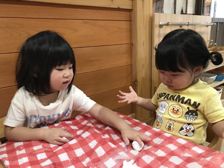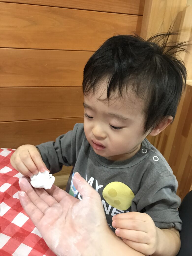 紙粘土で丸めています😊✨ こねこね頑張っているよ~👏