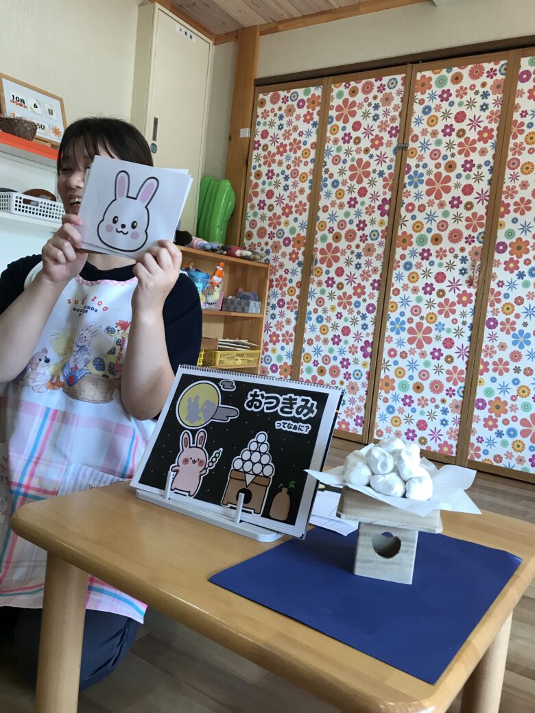 十五夜とはなにか簡単に説明しました⭐ 最後はクイズ形式でみんなで楽しみました🩷