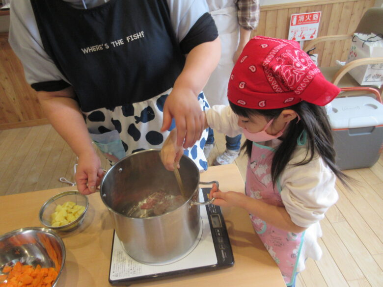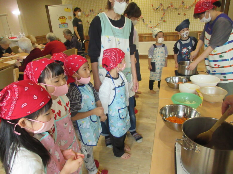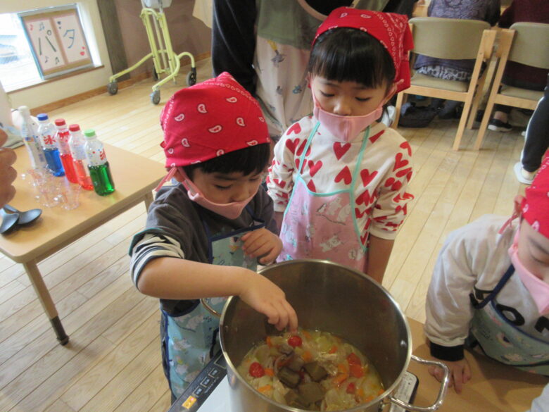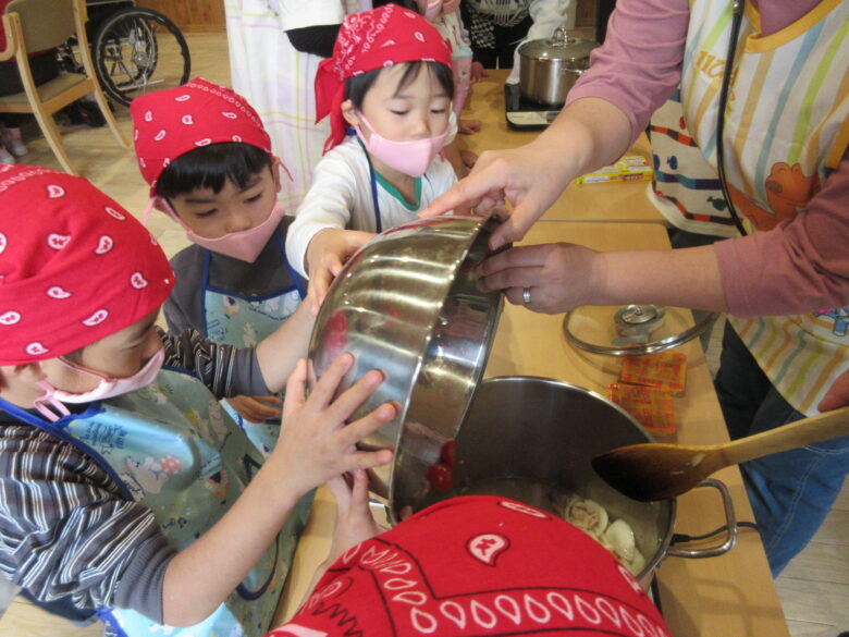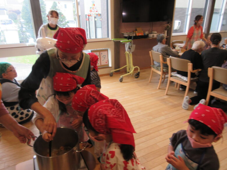 入居者さんが切ってくれたお肉や野菜を入れて・・