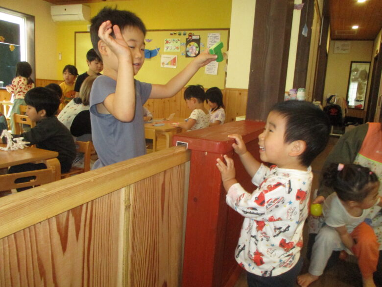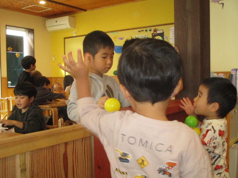 子どもの中には、5歳児のお兄さんにボールを自分から手渡すなどの交流が見られましたよ