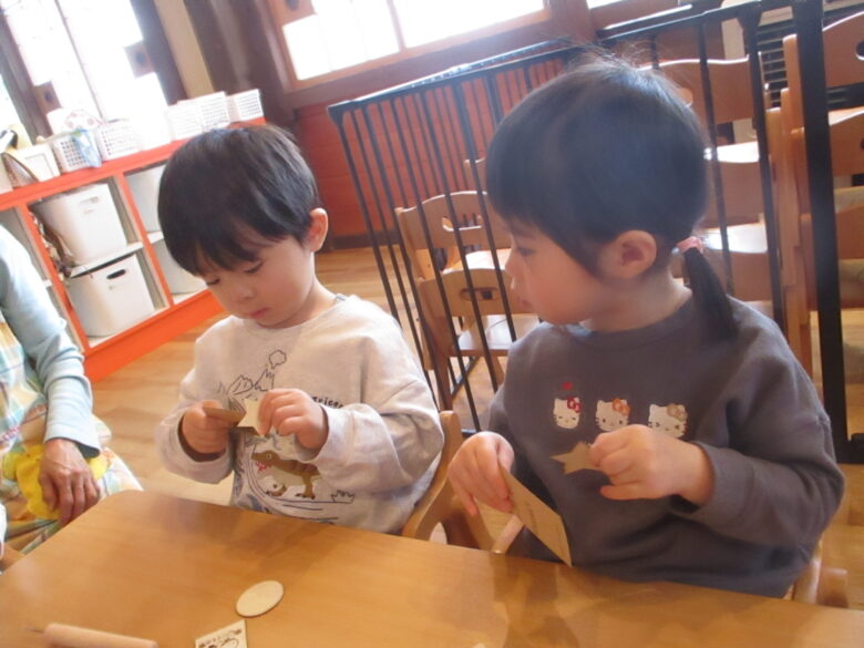 今日お休みしていたお友達は、白石園で今日の工作をしますね😊