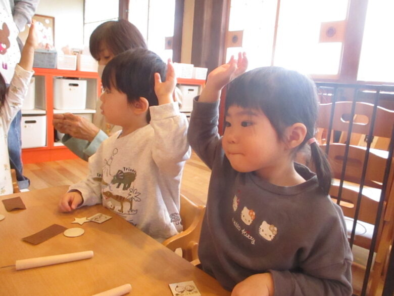 たくちゃん先生に、「出来ましたか~?」と聞かれると、「はーい🙋🏻♂️🙋🏻♀️」とお返事していました😄