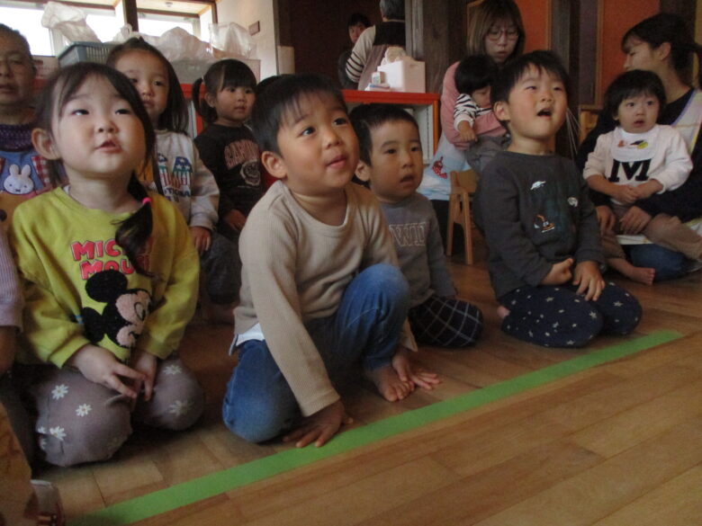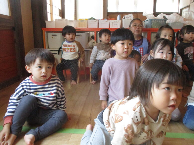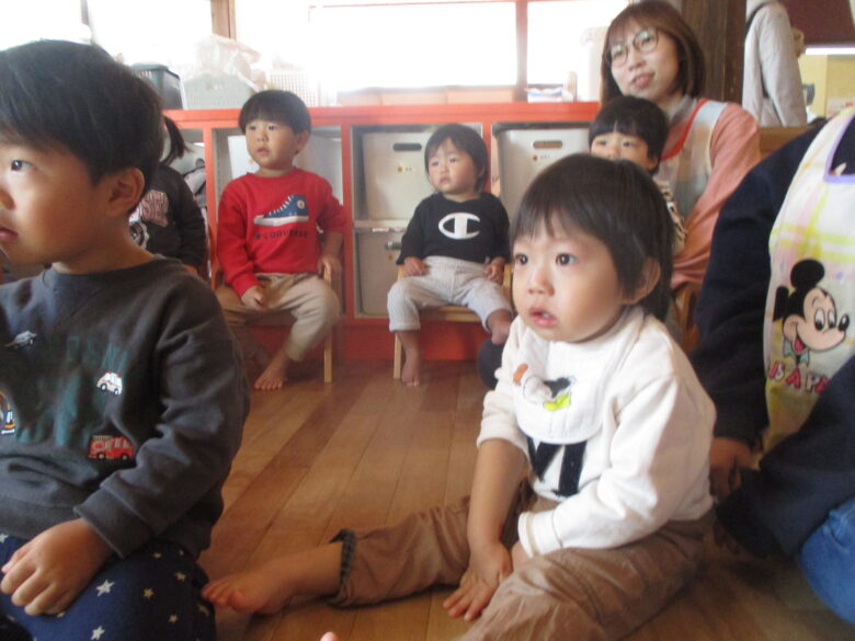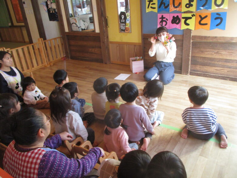 職員の出し物は、手袋シアター「3匹のこぶた」「メロンパン」を楽しみました。