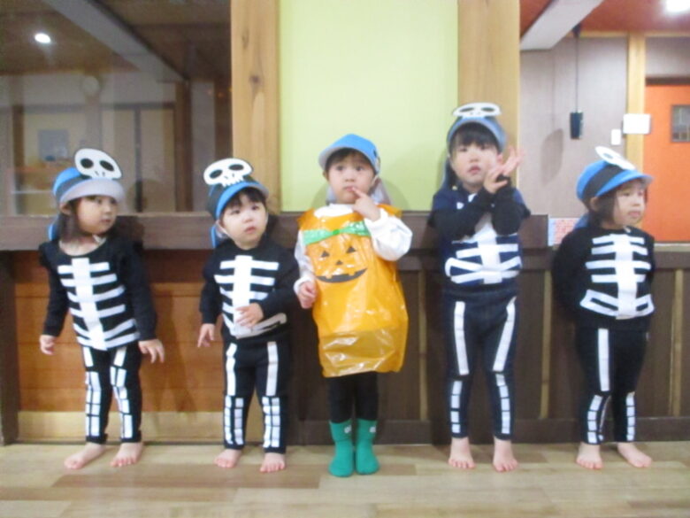 この合言葉を言ったらお菓子がもらえるかも・・・と毎日ハロウィンを楽しみに待っていた子どもたち🎵
