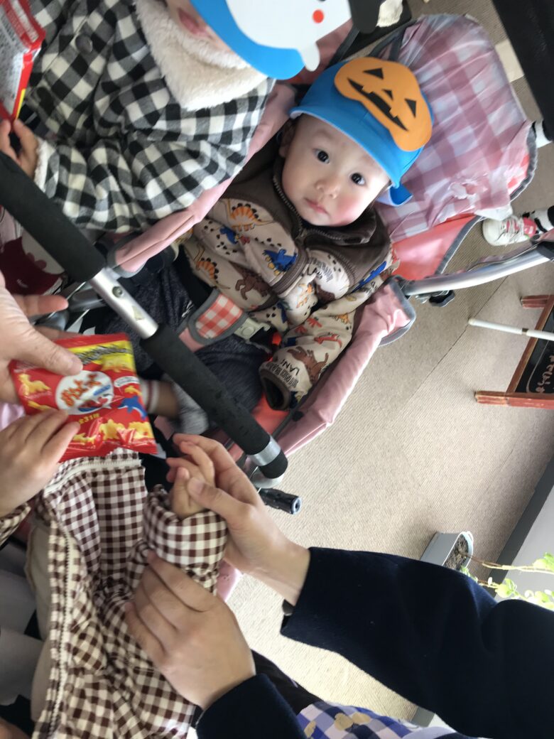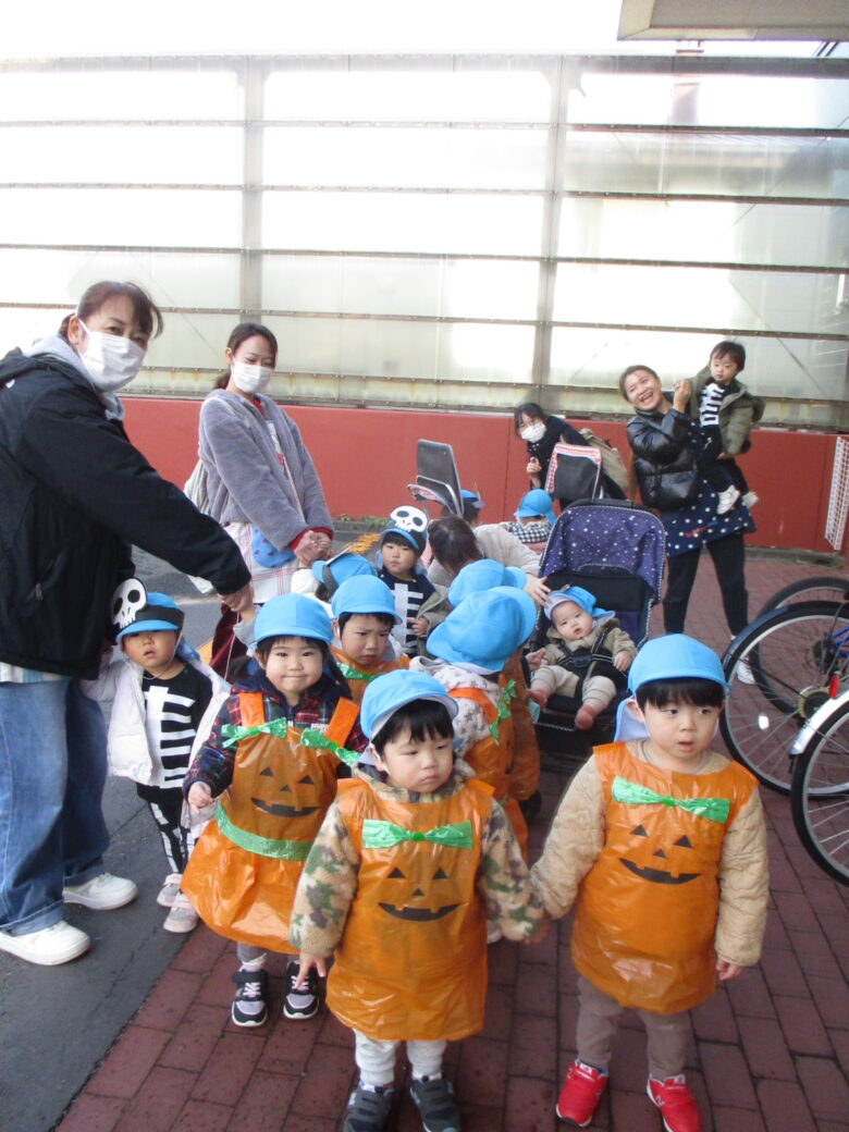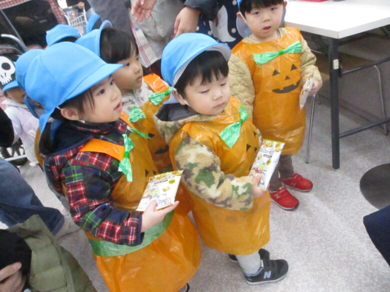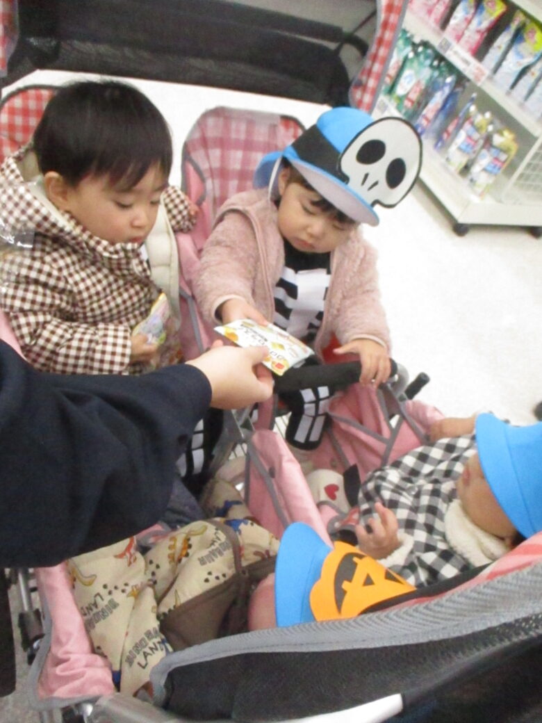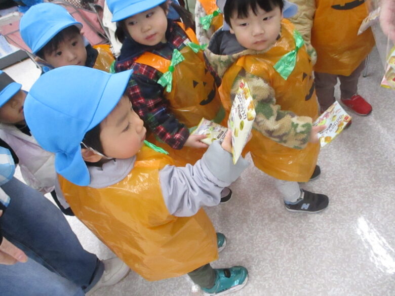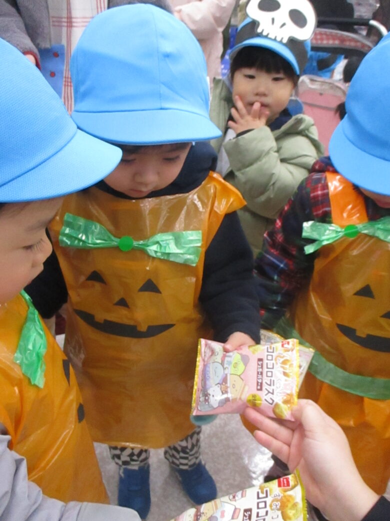 園周辺の施設を回り、「トリック・オア・トリート!」の合言葉を伝えて、お菓子をもらいに行ってきました🍪🍬