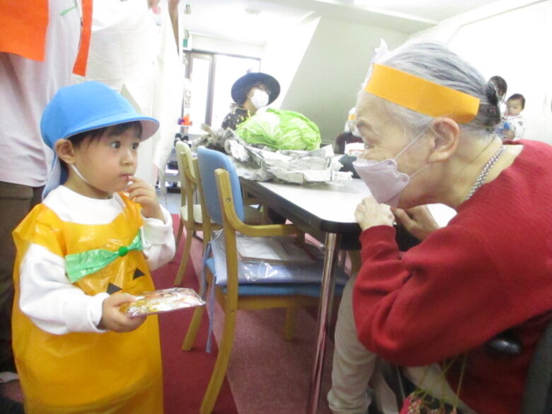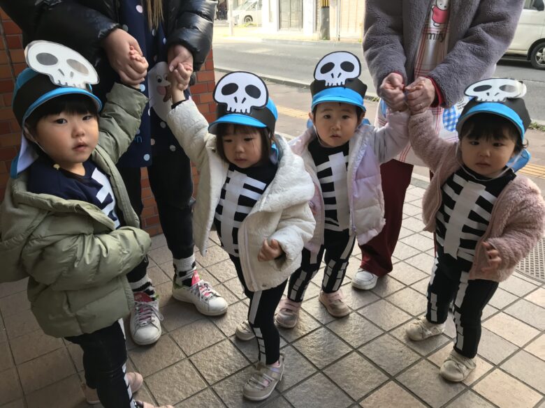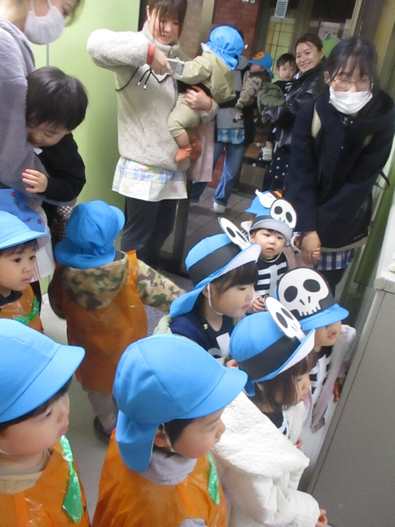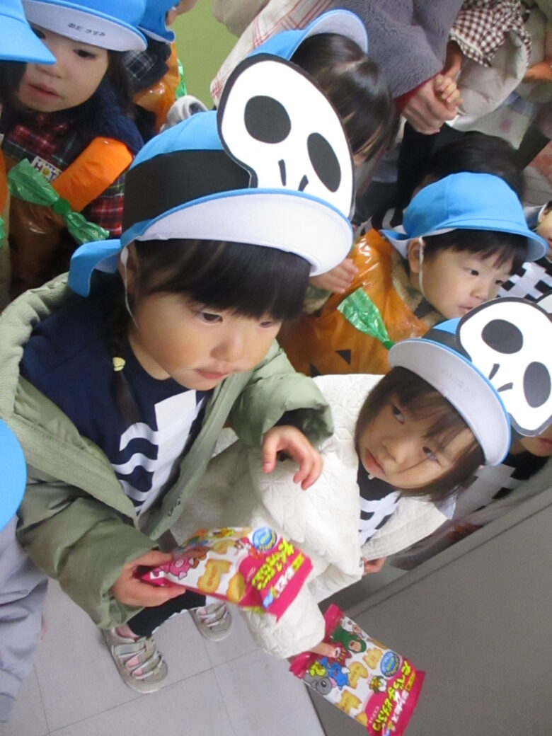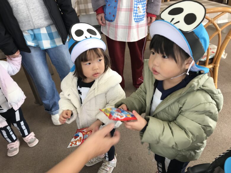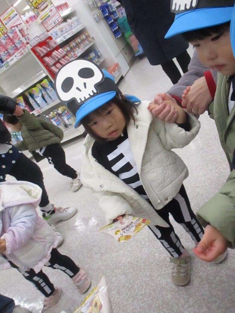 園周辺の施設を回り、「トリック・オア・トリート!」の合言葉を伝えて、お菓子をもらいに行ってきました🍪🍬