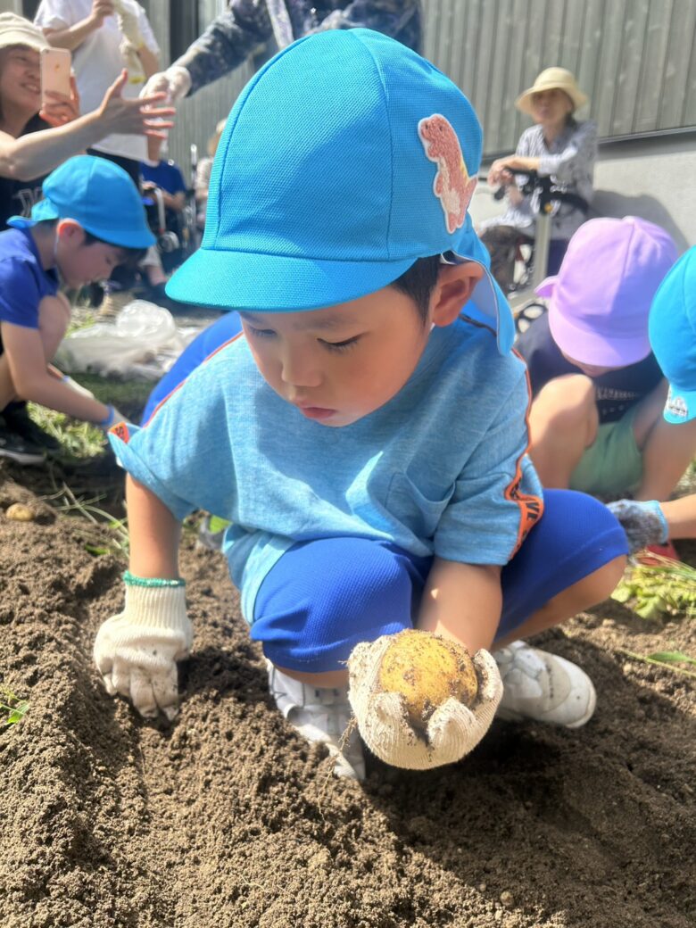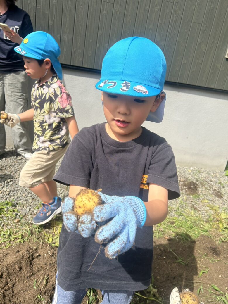 バスの中では、「あ!ここ通ったことある!」と景色を眺めてお友だちや保育者に嬉しそうに教えていたお友だちや、保育者の読み聞かせの「おいも」の絵本では、「今日芋掘りだからぴったりだね!」「これが今日ほるイモかぁ!」と興味を持っていた様子の子ども達でした✨