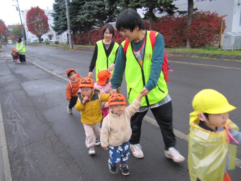 帰りは、あいにくの雨・・・でしたが、園バスが迎えにきてさらに喜び倍増!