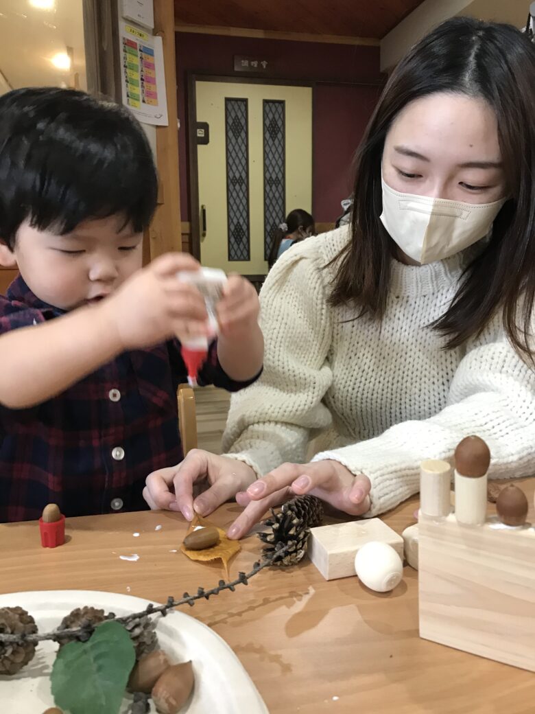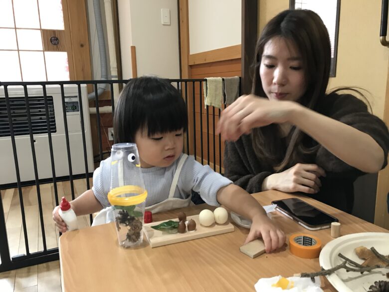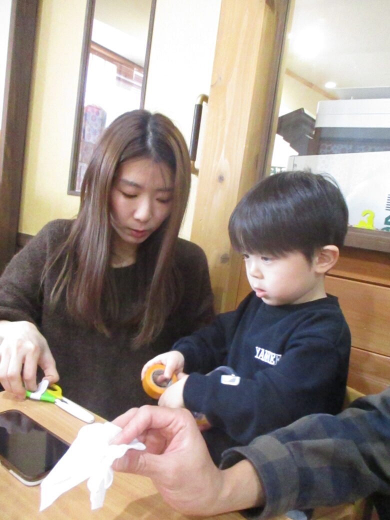 使い慣れていないボンドはお母さんと一緒に頑張るよ😉