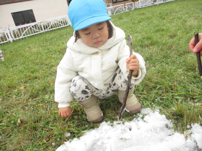 「冷たいわ!」と、転がっている棒を見つけたので「それいいねえ♪」と