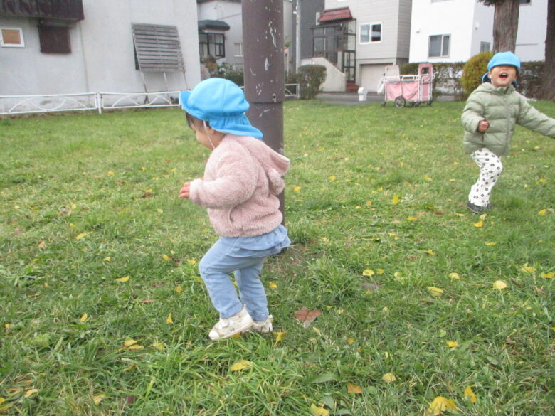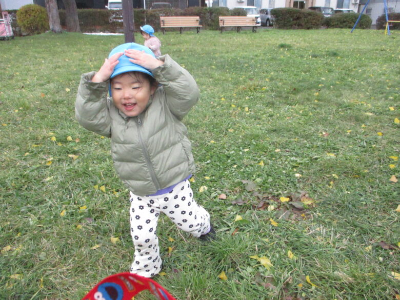 風が吹いて帽子が飛ばされる~それでもへっちゃら🎵走るよ~!
