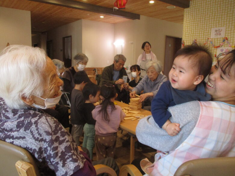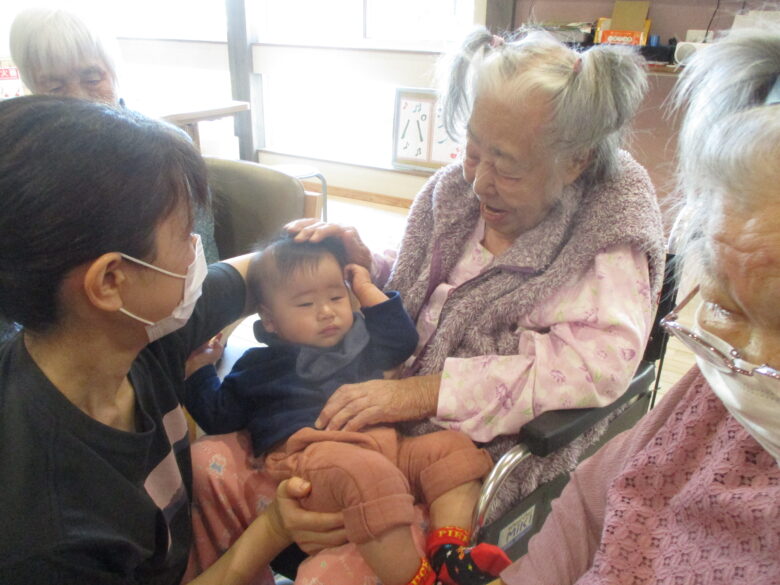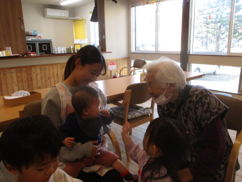 見慣れない場所で少し緊張気味でしたが、すぐに慣れておじいちゃんおばあちゃんとたくさん交流することができました(^^♪ また一緒に無垢の家に行こうね♪