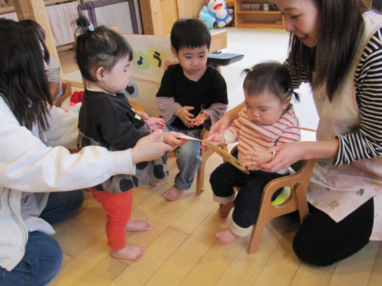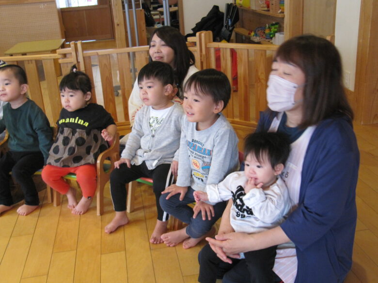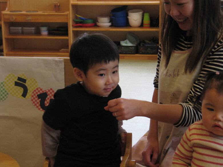1歳児さんも0歳児さんも、最後まで泣かずにお友達の前にいられたのはすごい事ですね😊