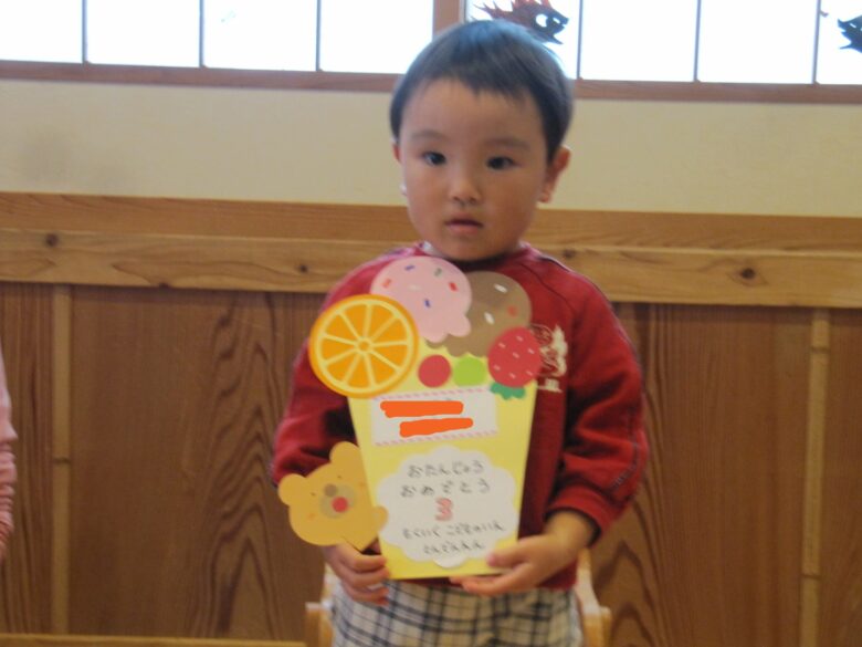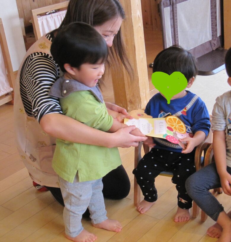 当日病気で来れなかった主役のお友達がいましたが、元気に登園後、みんなでお祝いをしました。