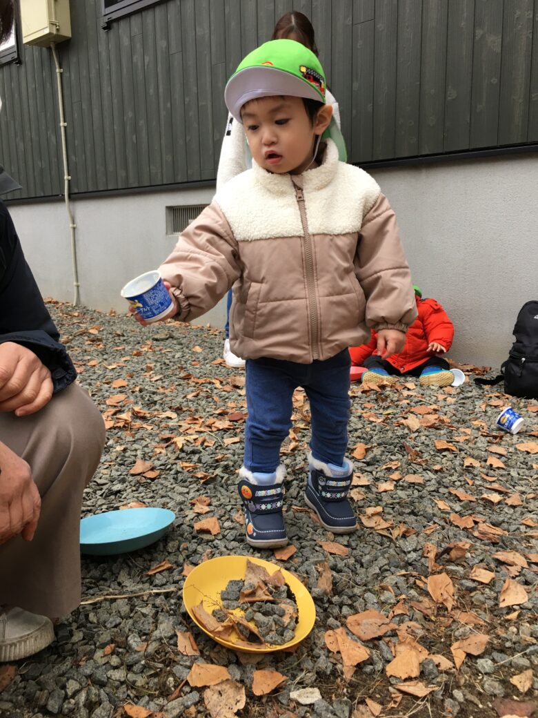 石を白飯、落ち葉をカレーに見立ててカレーライスを作りました。。