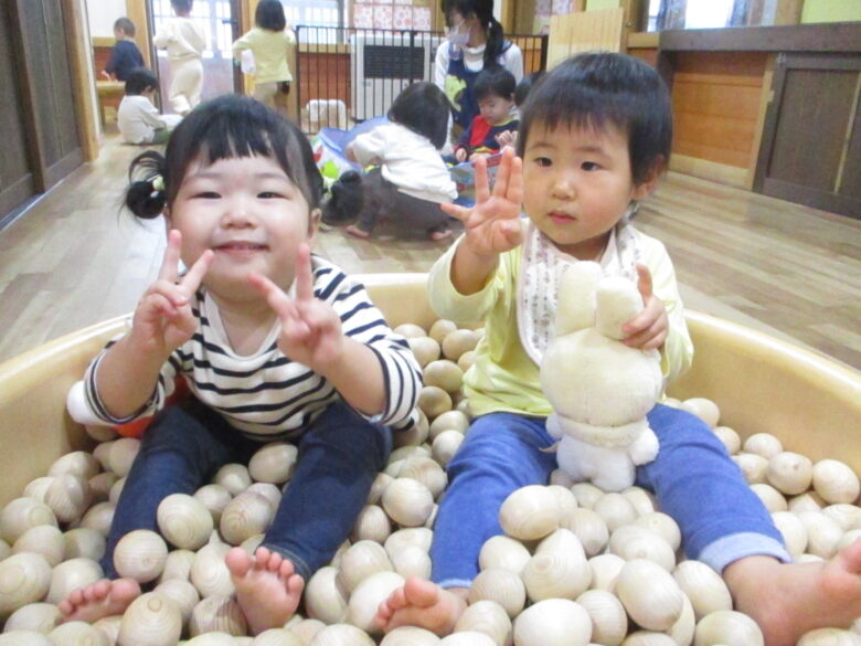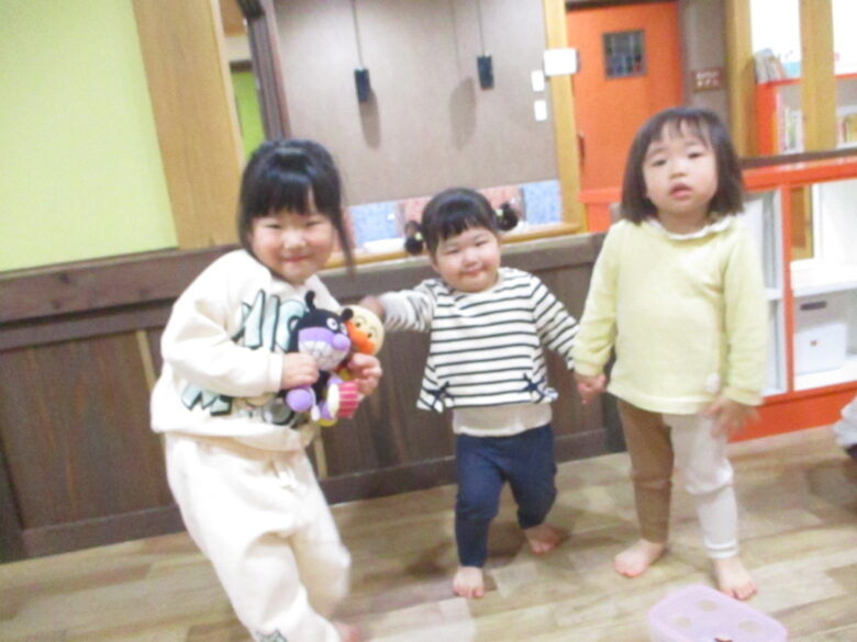 白石園 くり組 2025.11.28 NEWS白石園 室内遊び♪ 今日は、ボールプールで遊びました🎵「🎵どんな色~が好き?🎵」と歌に合わせてそれぞれ色々な色のボールを見せてくれました(^^♪ くり組さんは、最近おままごと遊びもブームです⭐ 手を繋いで室内お散歩も楽しんでいました☆ 前へ一覧へ戻る