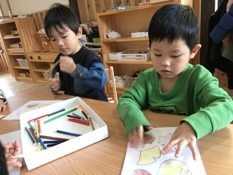 まずは、塗り絵をしてもらったあとにハサミでチョキチョキ✂️