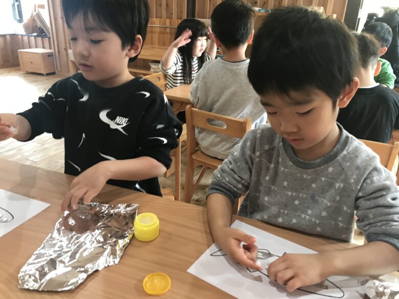 線の通りに切るよう、真剣になっていたかえで組さん🙂
