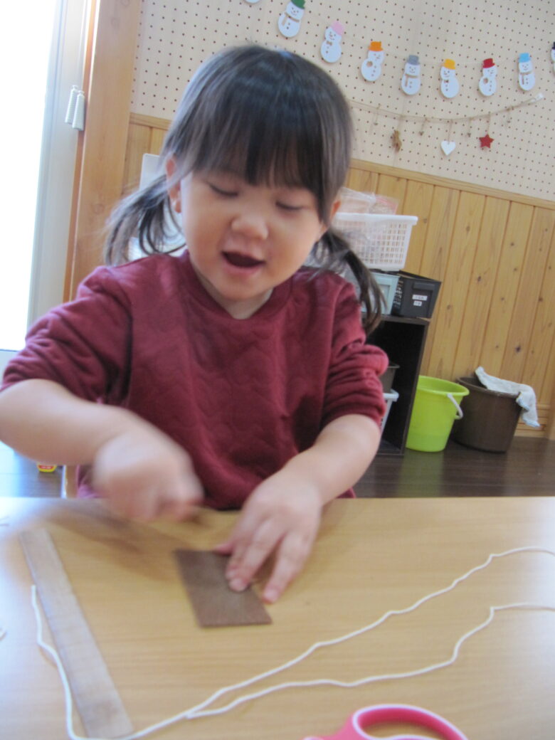 難しい所もあったけど、完成が嬉しくて大事に保護者に見せ、「自分で作ったよ」と報告していて
