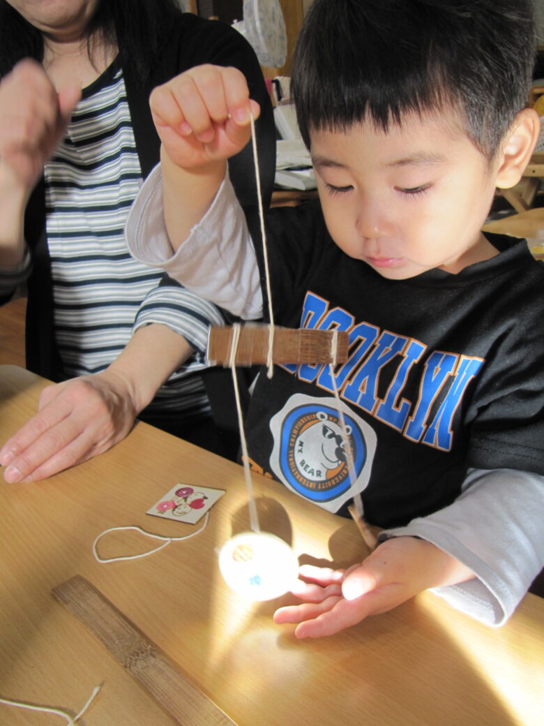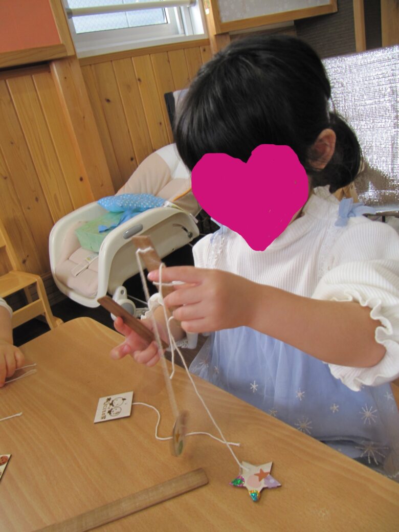 いよいよ完成!で自分のモビールをそっと持ちあげ、にんまりして「出来た~!」と大喜びでした。