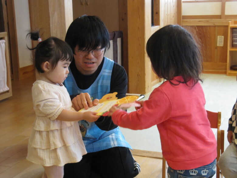 今回の保育士の出し物は、「おめんです」の屯田園バージョンでした。