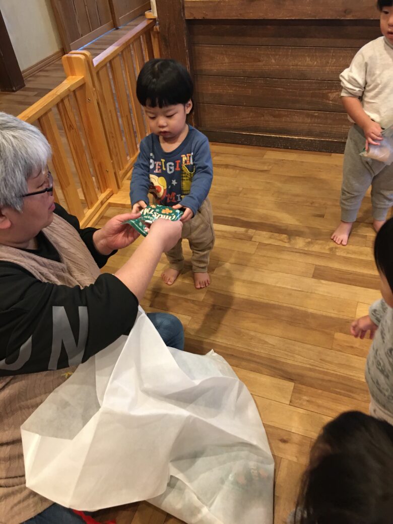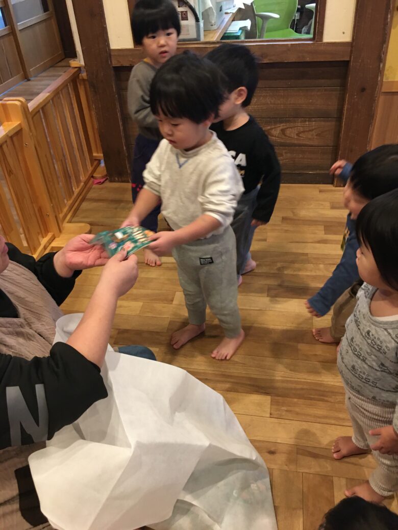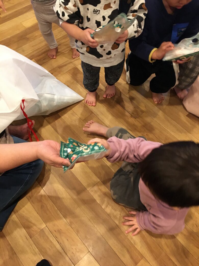 お昼寝から起きるとクリスマスツリーの所にサンタさんからのプレゼントが届きました😊