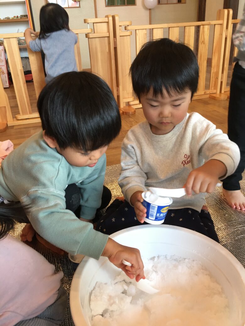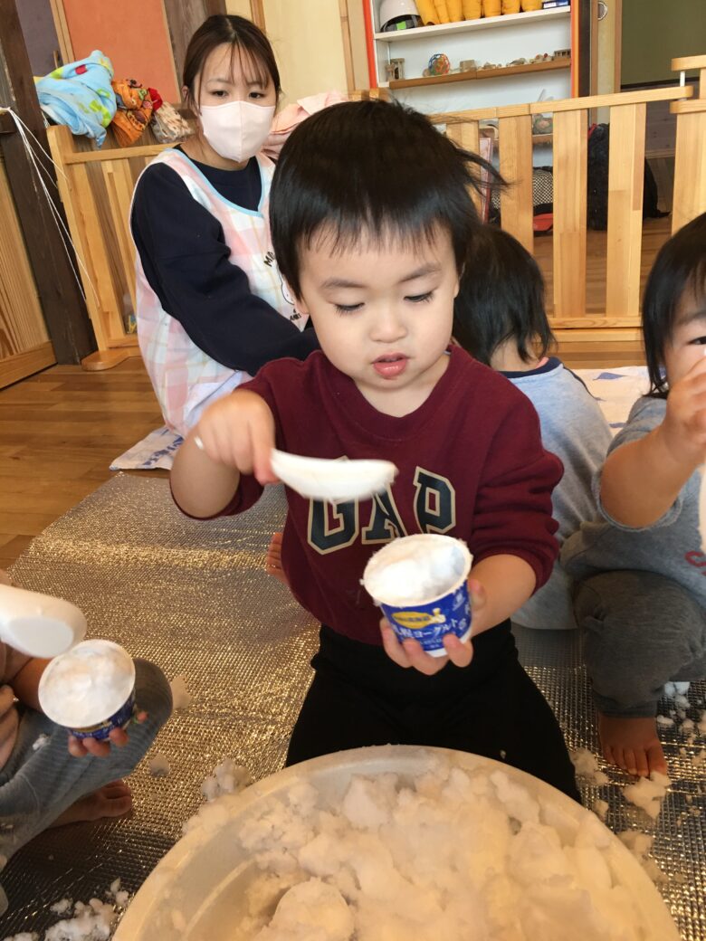 外は極寒だけど室内はぽかぽ。室内の中での雪そびは楽しいね😊
