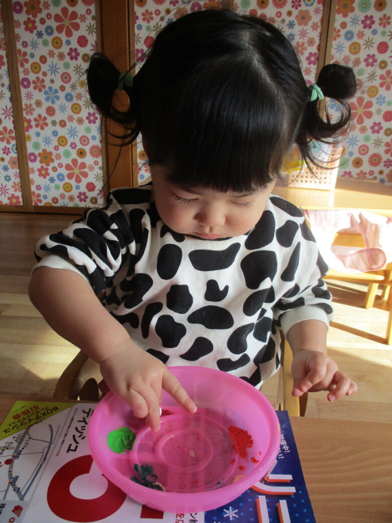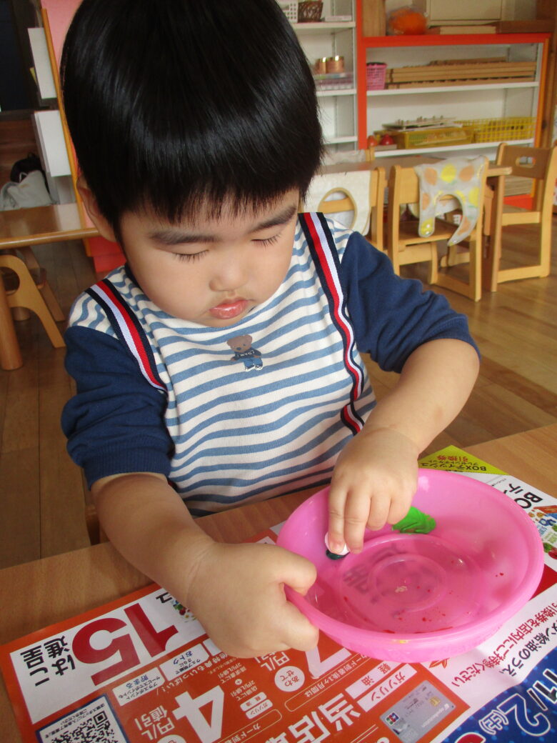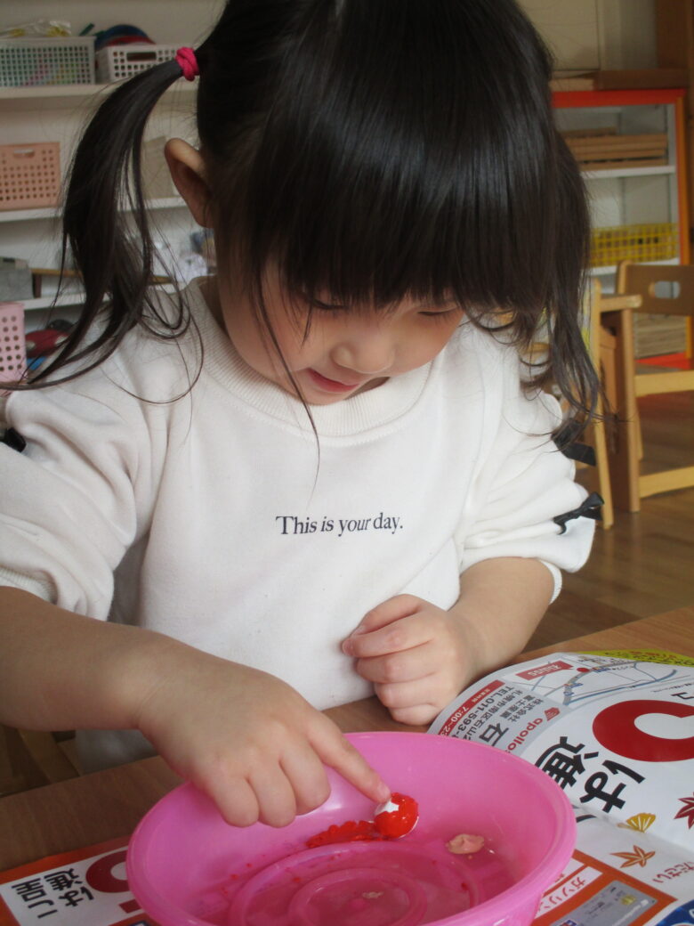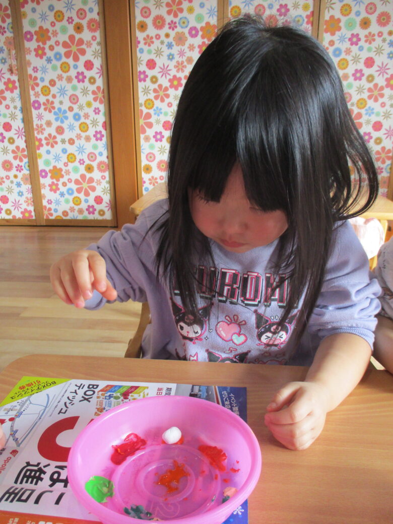 コロコロ・・・と豆を転がして色塗り完成! みんながんばりました💫