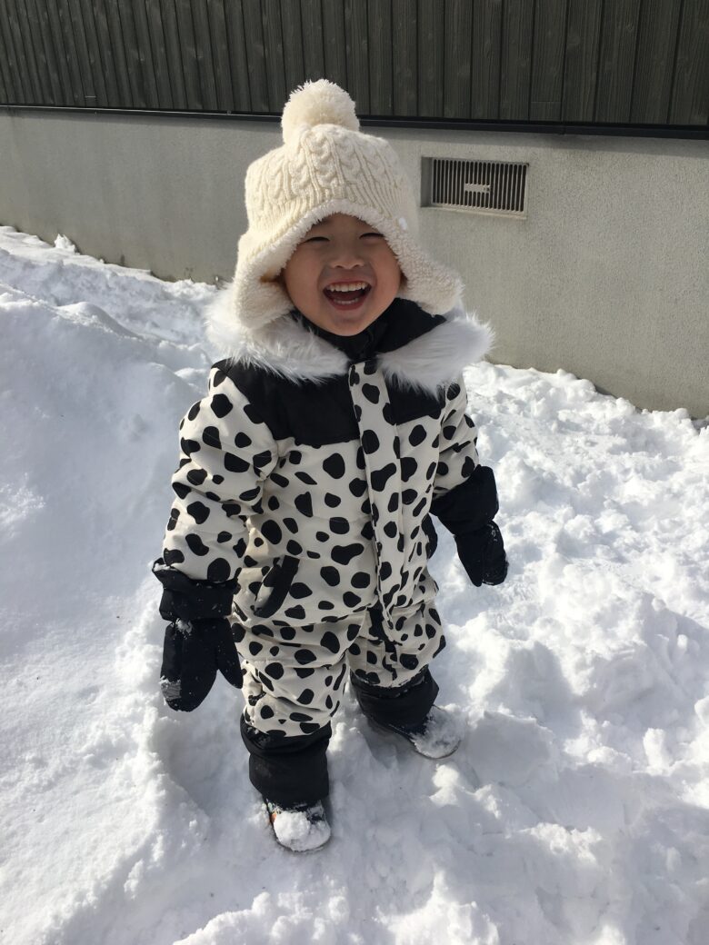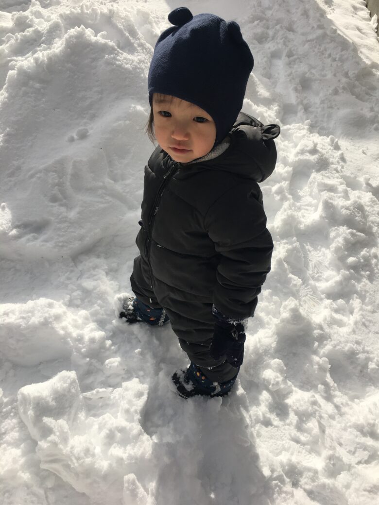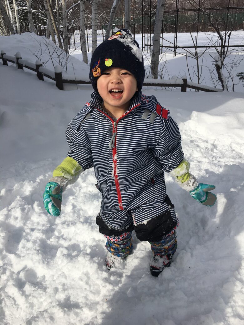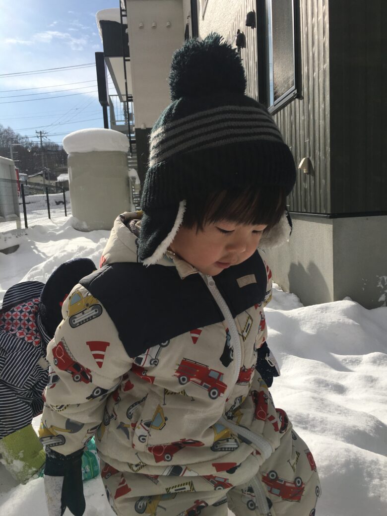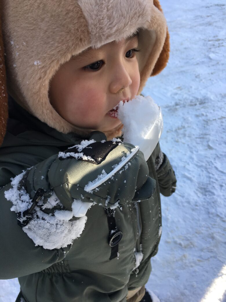 雪山に座って気持ち良さそう。そのままお尻滑りを楽しんでいました。
